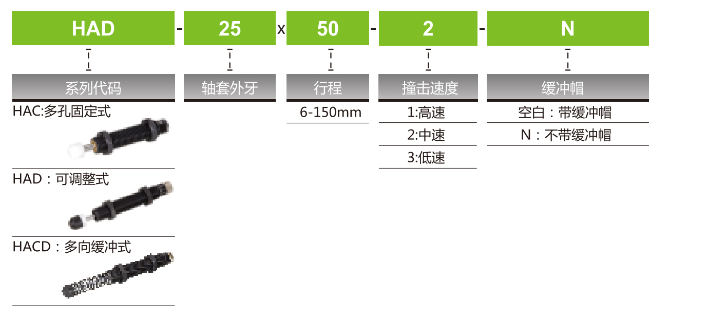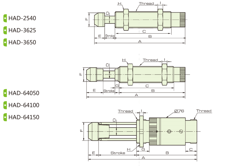 | HAD-2525-N | M25×1.5 | - | 118.5 | 101 | 8 | - | - | - | 32 | 10 |