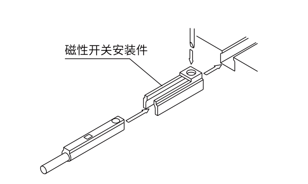 ①把磁性開關(guān)安裝件如圖所示插入氣缸的開關(guān)安裝槽大體設(shè)定在磁性開關(guān)的位置。