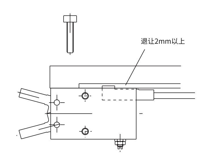 在上圖所示安裝面?zhèn)仁褂么判蚤_關(guān)的場合因磁性開關(guān)安裝件從端面凸出,故安裝板上應(yīng)設(shè)計退讓2mm以上。