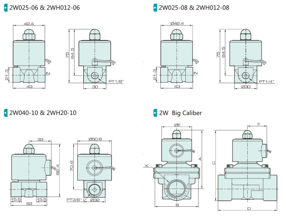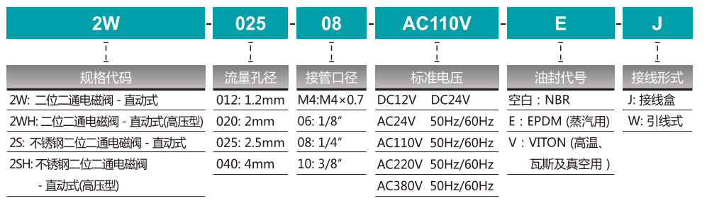 | 型號 | 2W025-06 | 2W025-08 | 2W040-10 | 2WH012-06 | 2WH012-08 | 2WH020-10 |