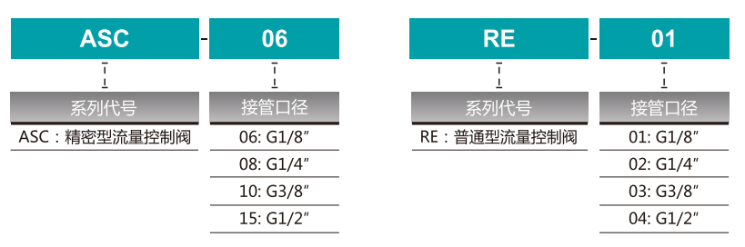 | 接管口徑 | G1/8” | G1/4” | G3/8” | G1/2” | G1/8” | G1/4” | G3/8” | G1/2” |