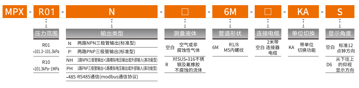 [注]MPX-R口口口R-6M-KA此R代表耐腐蝕型壓力開(kāi)關(guān)