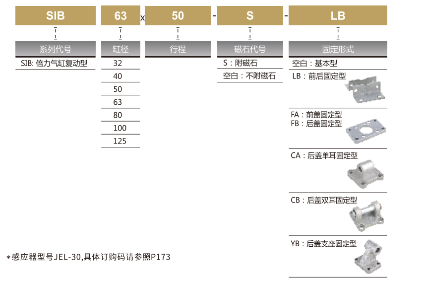 SIB系列倍力氣缸是二級相同缸徑、相同行程且符合ISO15552標(biāo)準(zhǔn)的氣缸串聯(lián),其推力和回復(fù)力為標(biāo)準(zhǔn)缸的二倍;氣缸與氣缸間采用同材料的連接座相連,結(jié)構(gòu)緊湊,安裝方便。